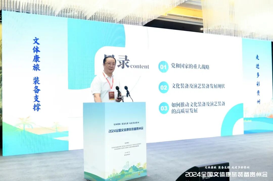 7月5日,2024全国文体康旅装备贵州会在贵阳成功举办。工业和信息化部装备一司、文化和旅游部科教司领导莅临,贵州省人民政府副省长张敬平、全国文体康旅装备联盟理事长孙若风出席会议并致辞。中国演艺设备技术协会理事长朱新村作主旨演讲。
