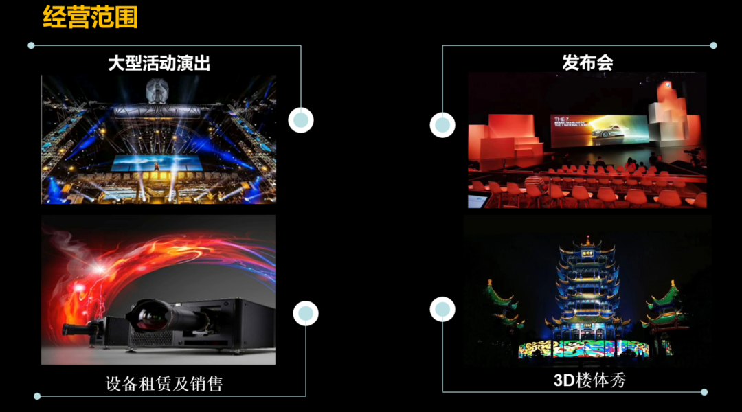 专注于投影设备租赁/工程安装及投影创意视觉的开发和应用,公司拥有300余台各类高端激光工程投影机提供租赁,拥有数百名技术工程师和设计师团队;公司成立至今,已顺利完成众多国家级/省部级大型赛事文艺演出、文旅夜游、会议展览、大型品牌公关活动的投影视效设计与执行。公司总部位于北京,并在武汉、上海、深圳、成渝等地设立了分部和设备仓储地,覆盖华北、华东、华南、华中、西南等片区;华丽憬鹏致力于打造具有国际化视野、行业领先水平的专业技术团队,为客户提供优质/高效/前沿的创意视效、全息投影、裸眼3D、沉浸式、互动、实景演出等一站式视觉解决方案。